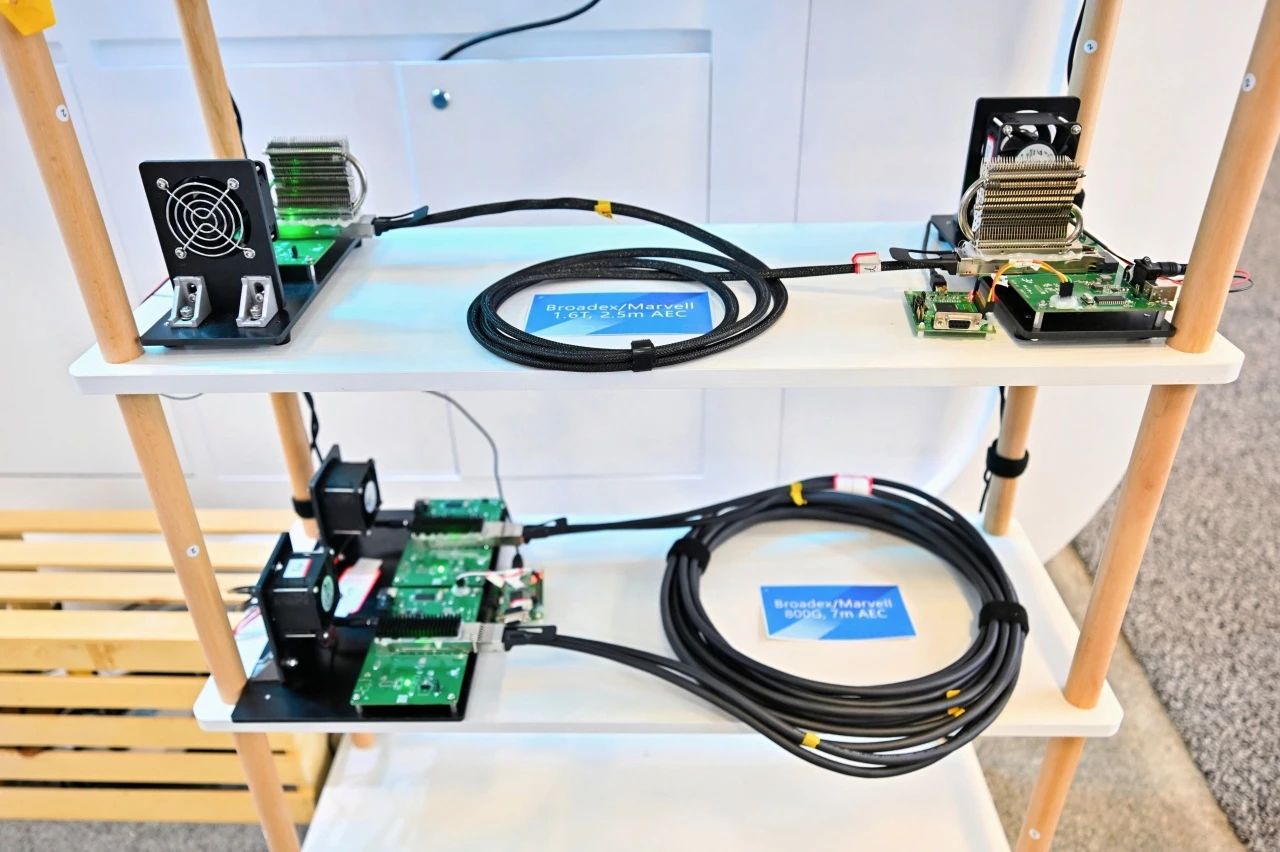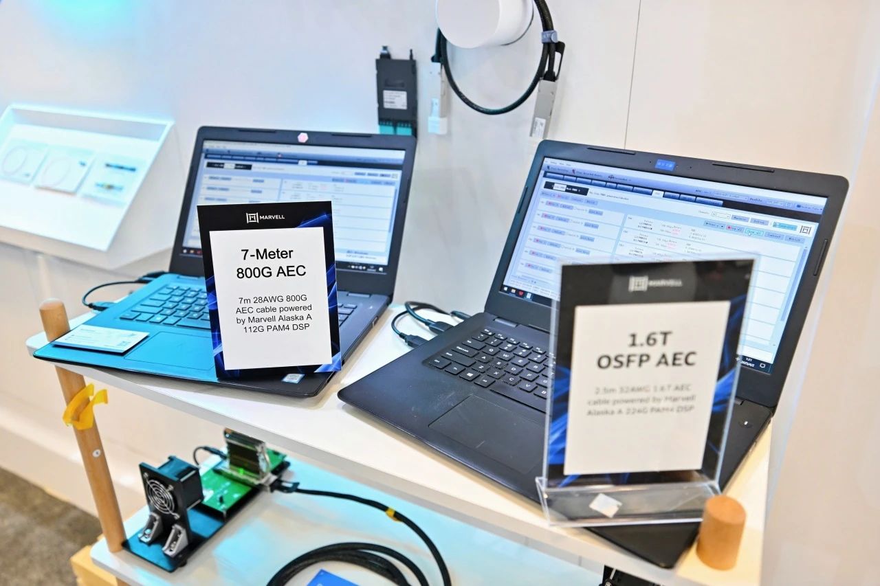动态演示区,博创科技与Marvell深度合作,推出小线径高性能AEC产品。其中1.6T OSFP AEC能够实现AWG32 2.5m传输,BER优于1E- 10;800G/400G OSFP AEC借助优异的SI/PI设计及工艺制造能力,能够实现AWG28 7m距离传输。
