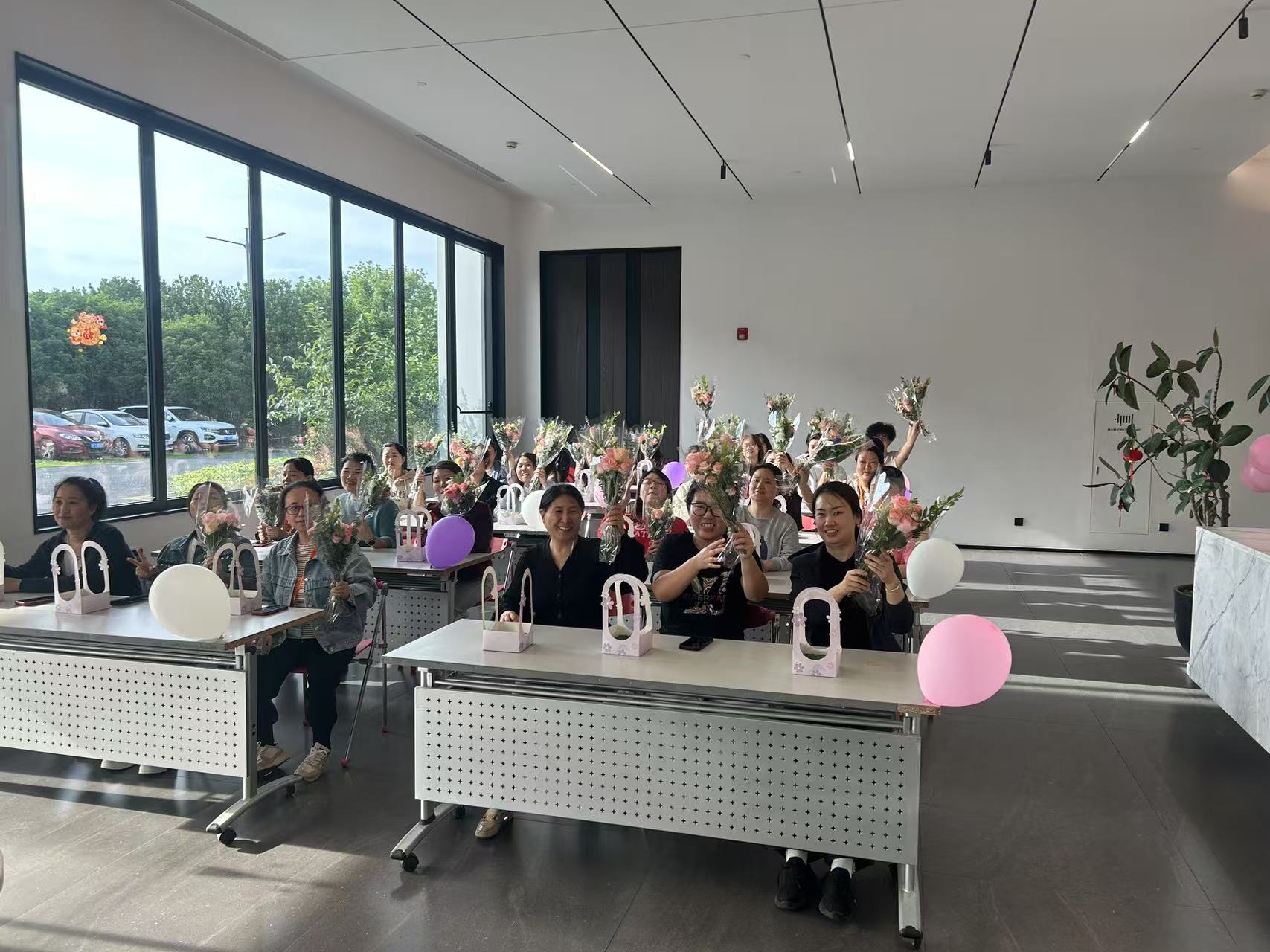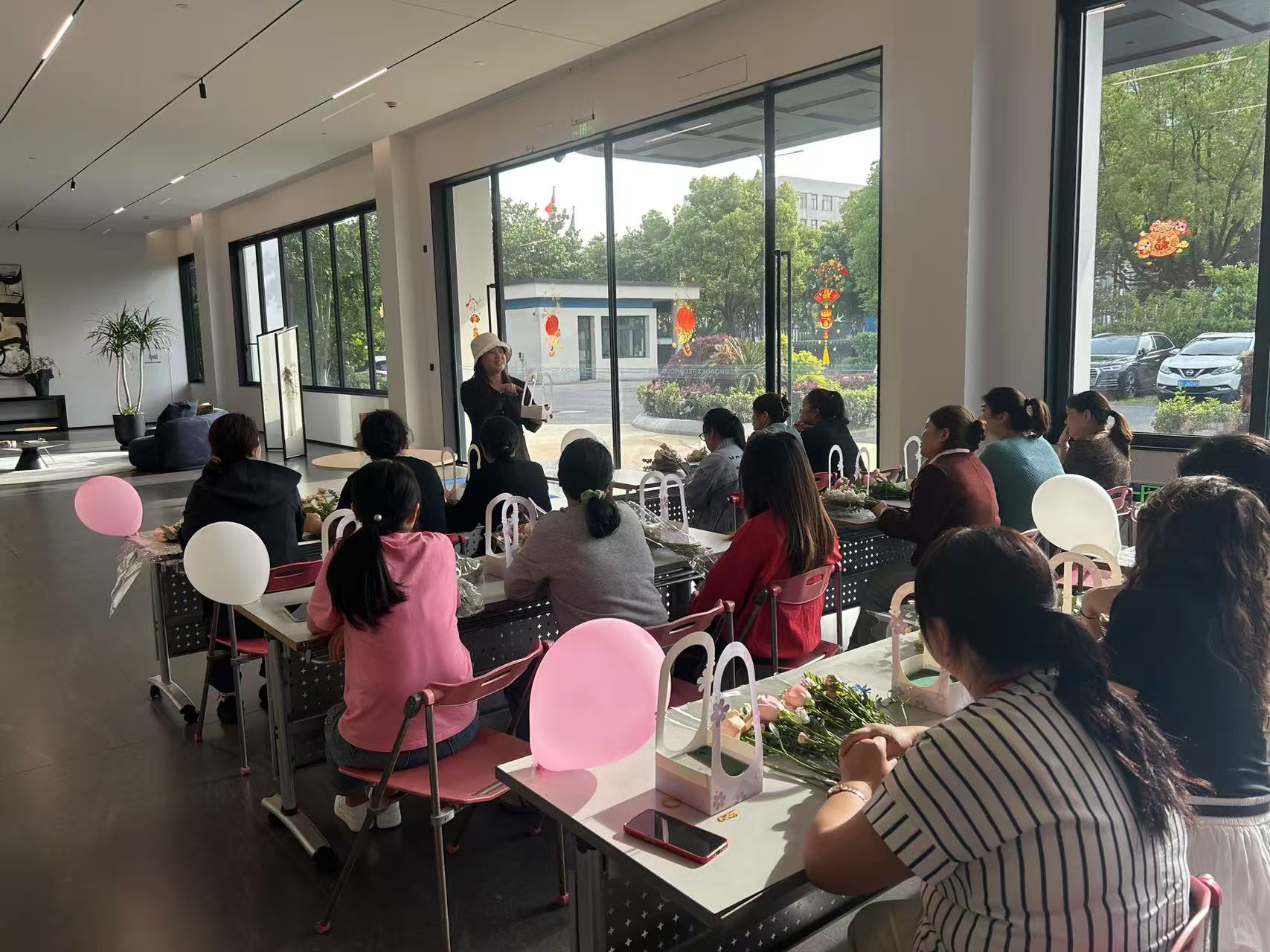 5月9日下午,博创科技股份有限公司(股票代码:300548.SZ)一楼大厅内,“以花寄情,感恩母爱”母亲节专属插花活动温馨展开。