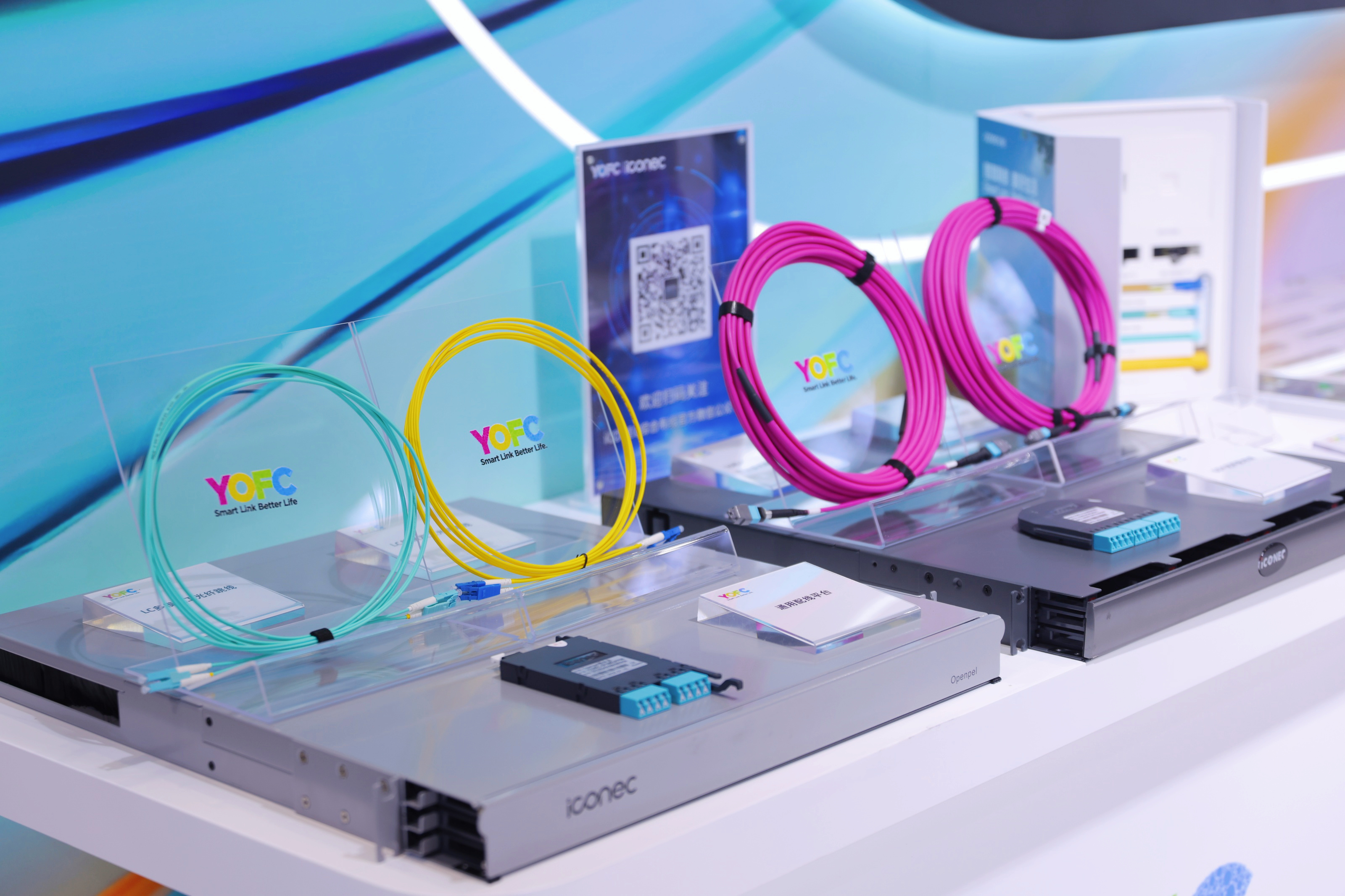 旗下iCONEC全新通用配线平台,支持8芯、12芯、16芯、24芯光缆布线方案,模块盒可混合使用,按需配置,同时支持在线插拔,节省部署时间和成本,实现10/25G-40/100G-400/800G的平滑升级。